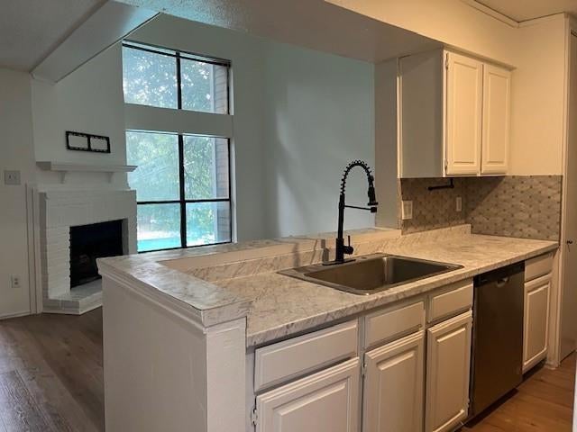 Spacious 2-bedroom condo with vaulted ceilings and an open floor plan overlooking the sparkling, well-maintained community pool and landscaped grounds. The family room features a brick fireplace and a sliding door leading to a private patio with views of the pool, mature trees, and the lawn area. Washer, dryer, and refrigerator, and microwave convey. Excellent North Dallas location near 635 and the Tollway — convenient to shopping, dining, and major employers.