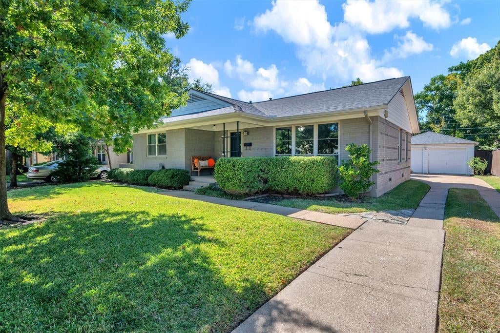 Picturesque mid-century home in the tranquil Lochwood subdivision near White Rock Lake. This beautifully maintained home features gorgeous wood flooring throughout and a wood accent wall in the living and dining areas that creates a stunning first impression. There is no carpet in the home. The kitchen offers abundant white cabinetry, granite countertops, a stone backsplash, stainless steel appliances, and a custom island with wine fridge, storage, and bar seating. Updates include electrical panel and breakers (2025), Low-E windows, updated lighting, high-efficiency HVAC (2020), roof replacement (2020), and a new garage door opener (2024). The home is gas-appliance compatible and includes a Ring security system. The spacious backyard with lush green grass and a newer fence is perfect for pets and entertaining. Walking distance to Lochwood Park with new pickleball courts, wooded trails, tennis courts, and multiple playgrounds. Convenient to the Dallas Arboretum, White Rock Lake, Lakewood, Lower Greenville, Casa Linda, and Lake Highlands for shopping and dining. Across from the brand-new Martha Turner Reilly Elementary School with security cameras that face the property, providing added neighborhood safety.
