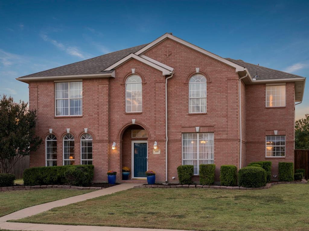 In Mesquite’s desirable Creek Crossing Estates, this five-bedroom, four-bath traditional delivers the rare combination of size, flexibility, and everyday luxury that today’s buyers crave. Built in 2000 and thoughtfully refreshed, it offers more than 3,000 square feet of open, light-filled living designed for connection, comfort, and long-term value. The home’s entire first floor features luxury vinyl plank flooring, blending durability and elegance, while the second floor received plush new carpet in September 2025, creating a soft, quiet retreat. At the heart of the home, the remodeled kitchen shines with quartz countertops, 42-inch cabinets, a five-foot square island, and updated designer lighting. A deep corner sink, gas range, and built-in desk with storage—currently styled as a coffee bar—make this space as functional as it is beautiful. The kitchen opens seamlessly to the living and dining areas, creating effortless flow for gatherings, work, and play. A bedroom and full bath downstairs provide flexibility for guests, multi-gen living, or a dedicated home office. Upstairs, the primary suite overlooks the spacious backyard and continues to romance with vaulted ceilings, space for quiet mornings and a bright bath. While an oversized media and flex room expands your living possibilities. Just beyond, a tucked-away bedroom with ensuite bath offers the ideal private suite for extended family, older teens, or an au pair. Outdoors, a gracious full-width pergola stretches across the home’s rear façade, shading an extended patio that overlooks a third-acre backyard—perfect for entertaining, gardening, or future pool plans. Recent upgrades include a 30-year roof with transferable warranty, which may qualify buyers for insurance discounts and long-term affordability peace of mind. A three-car garage with extended driveway completes this move-in-ready home. Close to schools, parks, and Highway 80 (Costco opens July 2026) for easy Dallas access, yet a zen world away.