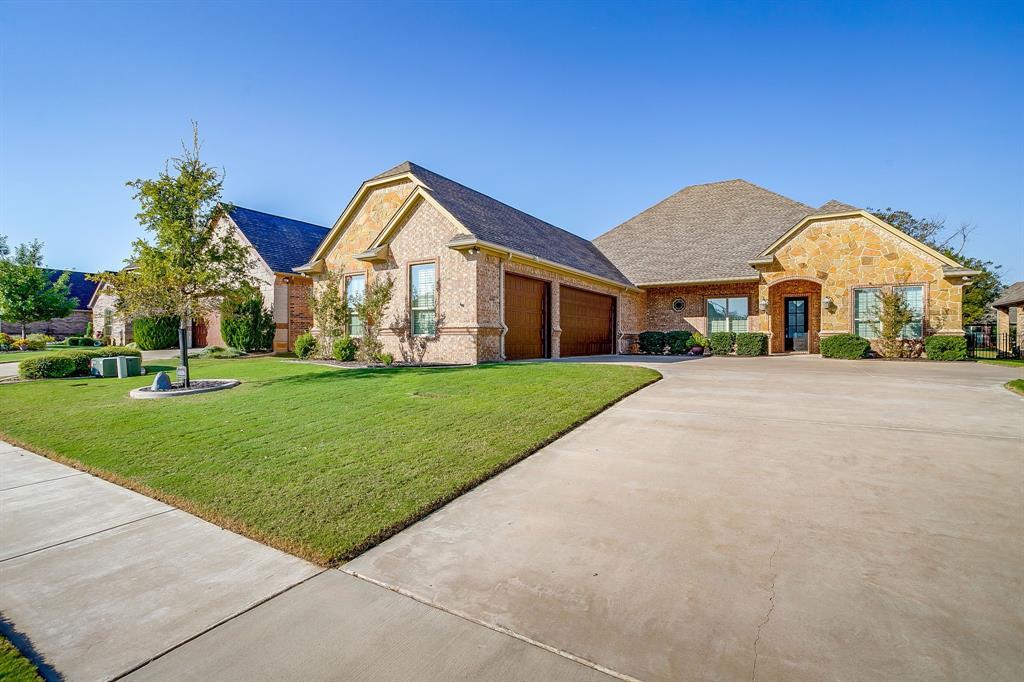 Pecan Plantation Park Place. Experience the exceptional in this high-quality Anthony Estate Homes custom home. Relocating owners hate to leave this energy efficient, beautifully designed residence. It features wheelchair accessible walkways & doors throughout. The open concept layout boasts solid oak wood flooring, soaring vaulted ceilings in the living room, a striking stone gas fireplace, elegant moldings, & plantation shutters everywhere. Gourmet kitchen is a chef’s dream with a 5 BURNER gas cooktop, double ovens, a large walk-in pantry, SS appliances, & abundant cabinet space. The office or craftroom offers floor to ceiling shaker style built-in cabinets, flexible shelving & drawers, & a stunning iron farm door for privacy. Master suite features hardwood floors, trey ceiling & enough space for a seating area. Spacious ensuite includes his & hers vanities, a separate tub & shower, & a DREAM walk-in closet. Secondary bedrooms are oversized, connected by Jack & Jill bathroom with ample closet space. There’s a half bath off the mudroom & a massive utility room with a sink, extra fridge space, & ice maker hookup. The home is equipped with two Rennai gas tankless hot water heaters. It backs to a tranquil treed greenbelt in prestigious Park Place, just steps from the neighborhood lake & walking trail. Enjoy year round outdoor living with a screened back patio & an extended patio area featuring a NEW pergola with a polycarbonate cover. Oversized three car garage includes a closet, staircase to additional attic storage, the golf cart garage has blown in wall insulation & window unit, ideal as a workshop. Additional features include foam encapsulation, a Trane HVAC system under warranty, a buried propane tank, epoxy garage floor, orchard water system, and a NEW 2024 roof with Class 4 shingles & gutters. Search YouTube 'Airplane Ride Around Pecan Plantation Rebecca Van Buren' to learn about our amazing community.