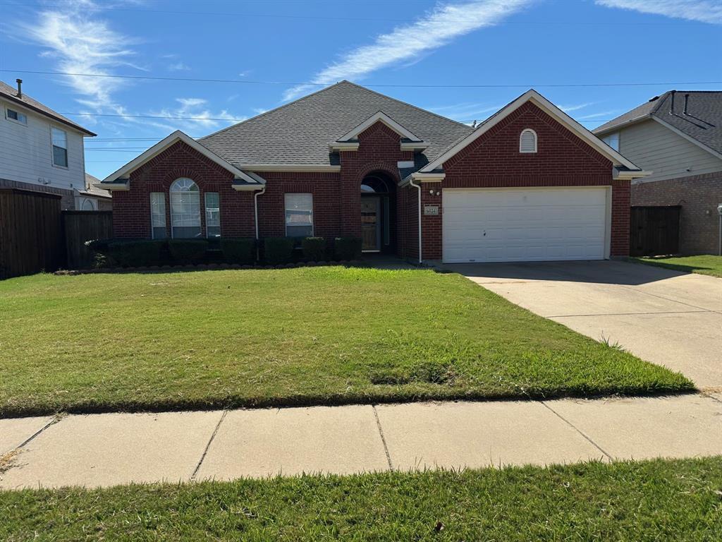 Beautiful move in ready 3-2-2. Elegant entry with formal living and dining areas. Huge family room open to the kitchen and breakfast area. Large kitchen with island, cherry cabinets, Corian counters, new stainless steel microwave and dishwasher, large pantry. Separate master retreat with garden tub, separate shower, dual vanities, and large walk in closet. 2 other large bedrooms split from master with separate bath. Large utility room, with extra storage. 2 car garage with opener. Lovely fenced backyard with garden area. This home is freshly painted and has wood floors just installed. Shed is not included in lease or useable by tenant.
