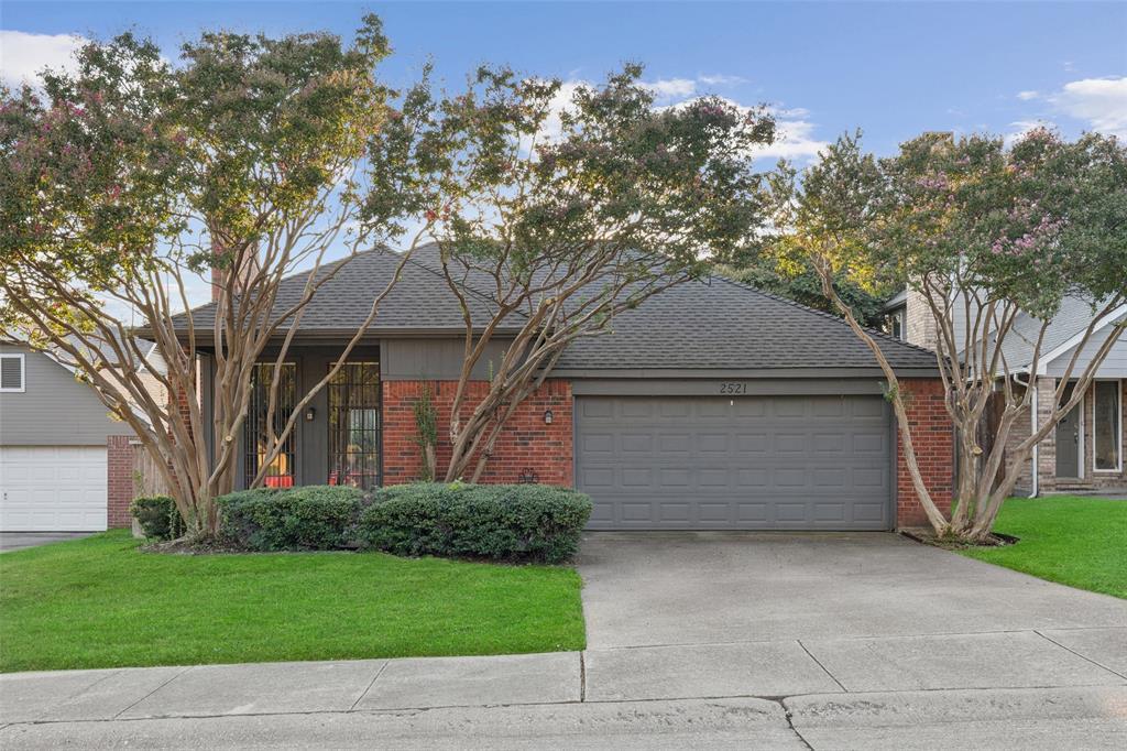 Curb appeal abounds with this beautiful 2-bedroom, 2-bath Carrollton home tucked away in a quiet, tree-lined cul-de-sac! Ideally located near three major highways, this home offers the perfect blend of comfort, convenience, and charm. Oversized windows and large skylights fill the home with an abundance of natural light, highlighting the open and versatile floorplan that includes two spacious living areas and a formal dining space. The inviting main living room features soaring vaulted ceilings and a cozy fireplace, creating the perfect setting for relaxing or entertaining. The modern kitchen is a chef’s delight, offering built-in stainless steel appliances, a breakfast bar with seating, and ample cabinet and counter space. The serene primary suite is a true retreat—complete with a sitting area, see-through fireplace, and a luxurious ensuite bath featuring dual sinks, a separate shower, soaking tub, and walk-in closet. The generous secondary bedroom provides the ideal space for guests or a stylish home office. The private backyard is perfect for morning coffee, quiet evenings, or weekend gatherings. Additional updates include a new AC installed in 2022 and a new roof in 2024, offering peace of mind for years to come. Enjoy a fantastic location with nearby parks, shopping, dining, and easy access to major roadways. This light-filled Carrollton gem combines modern comfort with timeless appeal—ready to welcome you home! 3D tour available online!