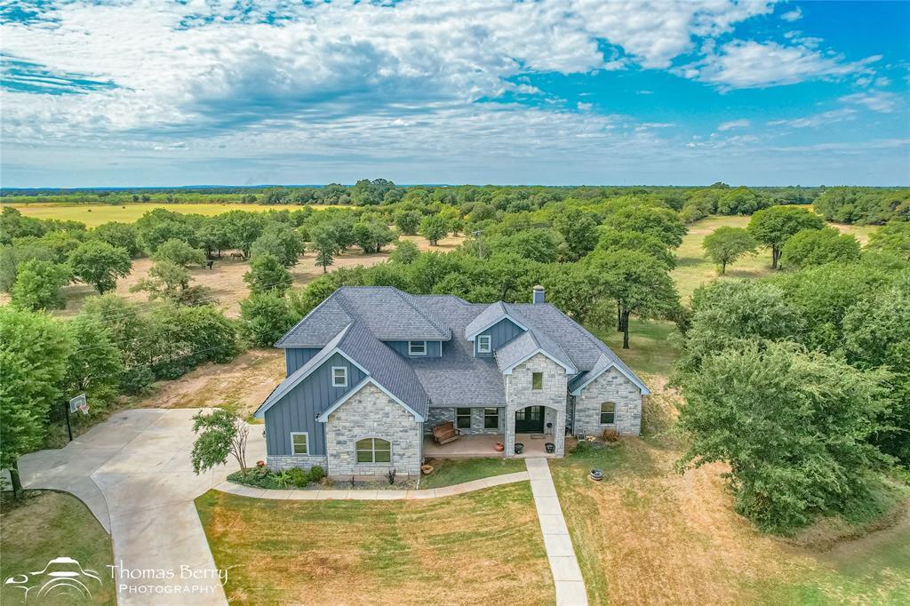 Discover the epitome of luxury and space in this exquisitely designed 5-bedroom, 3.5-bathroom home just 15 minutes from Abilene. With a two-car garage and an expansive layout, this residence is perfect for those who appreciate fine living in a serene setting. Step inside to be greeted by high ceilings and wood-look tile flooring that grace the living spaces, setting a sophisticated tone throughout. The heart of the home, the kitchen, is designed for the gourmet chef, boasting double ovens and a commercial-grade built-in refrigerator and freezer. A large walk-in pantry cleverly doubles as a safe room, ensuring both convenience and peace of mind. Each bedroom is generously sized, providing ample space for rest and relaxation. The primary suite is a true retreat, featuring a spa-like ensuite bath complete with luxurious amenities. The primary walk-in closet offers a private entrance to the laundry room, a thoughtful design for effortless convenience. Upstairs, a versatile bonus room provides the perfect space for a sixth bedroom, a secondary living room, a game room, or a home gym—the possibilities are endless. The exterior of this home is equally stunning, with classic stone siding accenting the front. Step through custom French doors onto a large covered front porch, perfect for morning coffee or evening relaxation. The massive covered back patio is ideal for outdoor entertaining, surrounded by numerous trees that provide generous shade. An expanded driveway off the side-entry garage offers ample space for easy maneuvering and playful activities like roller skating or shooting hoops. This well-designed driveway enhances the property's functionality and appeal. This exquisite home combines elegance, comfort, and multifunctional living, creating a perfect haven for those seeking both tranquility and luxury. Don't miss the opportunity to make this exceptional property your own.