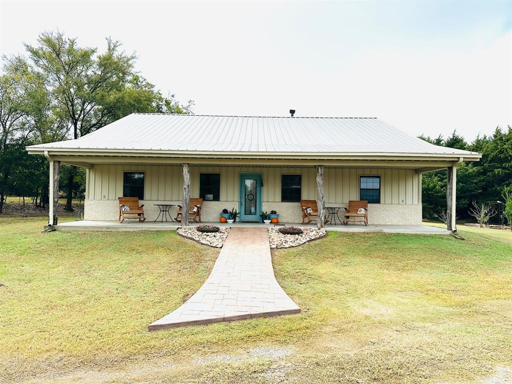 Country Living Close to Town. Just 8 minutes from town, this beautiful 3 bedroom, 3 bath home sits on just under 5 acres surrounded by trees and abundant wildlife. Spacious open-concept design with tall bead board ceilings & rustic wood trim throughout. Chef's kitchen features a huge island, long bar, galvanized aluminum countertops and tons of storage. Large living area, two dining spaces, wood-burning stove and central heat & AC. Large master suite with room for a sitting area, master bath includes a clawfoot tub, tiled shower with bench and double vanity. Glass doors open to expansive porches accented with white stone like brick. Outside you will find 2 ponds with one being stocked with fish, raised garden beds, chicken coop and an old west style saloon perfect for entertaining or storage. 4 car carport and plenty of room to roam. An outdoorsman's paradise and a homesteader's dream.