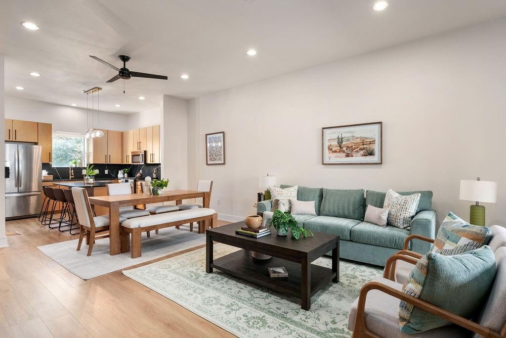 FURNISHED RENTAL! Stunning, pristine, and amazingly updated contemporary condo with the feel of a townhome. Private ground level entrance with fenced patio, private 2 car garage, 2 bedrooms with ensuite bathrooms plus a powder bath off the living room. The master retreat has its own floor with a wall of windows and spa-like remodeled bathroom which includes a soaking tub and large shower with two shower heads and one retractable shower wand. Amazing private-personal rooftop deck upgraded with new Decking. Other features and upgrades include quartz kitchen countertop and quartz bathroom countertops, white oak waterproof vinyl floors, no carpet! Covered, shady balcony off the living room. Incredible location in Oak Lawn near lots of shopping and dining.