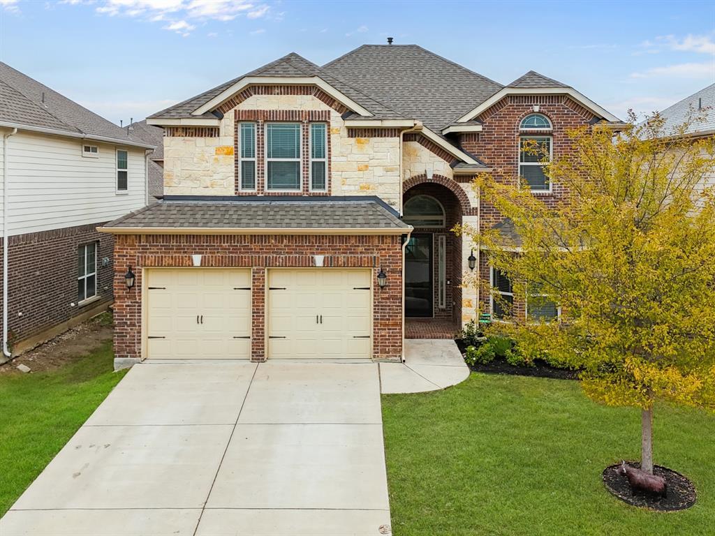 This beautifully designed two-story home, offers the perfect blend of modern construction, thoughtful updates, and functional living spaces ideal for today’s lifestyle. Newer-age construction means improved energy efficiency, contemporary floor plans, updated systems, and the peace of mind that comes with more current building standards. The spacious primary suite is located on the first floor and features generous proportions, dual sinks, an ensuite bath, and a walk-in closet—creating a true private retreat. Also on the main level is a dedicated office, perfect for working from home, along with an open and inviting living area showcasing built-in cabinetry, a gas fireplace, and abundant natural light. The kitchen is the heart of the home, complete with granite countertops, a large island, eat-in dining space, pantry, built-in cabinetry, gas cooktop, and water line to the refrigerator—ideal for both everyday living and entertaining. Adjacent dining and breakfast areas provide flexibility for gatherings large or small. Upstairs, you’ll find three spacious secondary bedrooms, including one with an ensuite bath, along with an oversized game room and a dedicated media room featuring built-in cabinetry perfect for movie nights or game days. Multiple full baths ensure comfort and convenience for family and guests alike. Additional highlights include engineered wood, ceramic tile, and carpet flooring, vaulted ceilings, sound system wiring, a wet bar, tankless water heater, and a full security system. The brick exterior, composition roof, and covered patio add timeless appeal, while the landscaped interior lot with sprinkler system offers easy outdoor enjoyment. Located in a vibrant community with access to a clubhouse, pool, parks, and jogging and bike paths, this home combines comfort, style, and modern convenience—all within a well-maintained neighborhood setting.